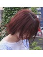鮮やかなレッドカラーにブラウン味を出す事で社会人ギリギリのオシャレカラーに★ベースには、よりますがブリーチなしでもここまでの鮮やかさ(^ ^)