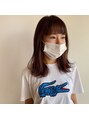 前髪と赤髪がポイントなミディアムスタイル。ぱつっとした前髪と赤髪の相性抜群です。暖色カラーは肌色も髪の艶もきれいに見せてくれるのでおすすめです。カジュアルでお洒落な印象に♪