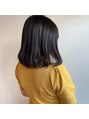 ナチュラルな内巻きボブ。まとまりやすいようにカットしています。女性らしいフォルムで清楚な印象に。カラーは艶々にバイオレットカラーです。