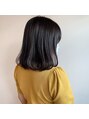 ナチュラルな内巻きボブ。まとまりやすいようにカットしています。女性らしいフォルムで清楚な印象に。カラーは艶々にバイオレットカラーです。