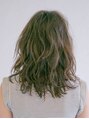 32mmのコテで全体的に波巻き、顔周りのみリバース巻きにし、ふんわりとした動きを出す。オイルとミルクでスタイリングしたラフなミディアムスタイル。カラーはハイライトをプラスした立体感のある外国人風カラー。