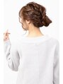 ざっくりとしたベースの編込と、チークラインで作った低めのお団子が大人の雰囲気のアップスタイルです。アクセサリー次第で、ラフにも、お呼ばれにもOKな万能スタイル。【EARTH盛岡南】