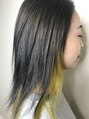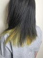 ベースは元々ブリーチが入っていて、インナーにブリーチ施術をしてから色を入れてます。メリハリをつけるのにベースの色はグレージュをインナーカラーにはかわいいイエローで顔色を綺麗に見せるカラーに仕上げました。