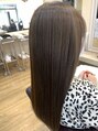 毛先のダメージのみカットしました。カラーはハイライトが入っているため、抜けても綺麗な状態が続くよう濃いめにカラーをしています。同時に酸熱トリートメントで、パサつかずまとまりある髪質にしています。