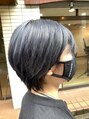 ブリーチ2回しています。色がすぐ抜けてしまうため、濃いめネイビーに少しパープルを入れて抜けても綺麗なグレーになるように、カラーしました!