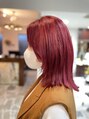 ブリーチ必須のカラーですが、鮮やかなチェリーレッドがかわいいミディアムスタイル。ボブやショートスタイルも相性いいです◎【千葉】【髪質改善】【酸熱トリートメント】