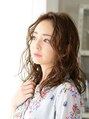 全体にゆるやかな波ウェーブを作ることで、ぺったりしがちなセンターパートに、やさしげな空気感を出しました。仕上げはウェット感のあるスタイリング剤で、清潔感をプラス。センターパートでも表面をコテ巻きすることで、華やかな愛されスタイルが完成!