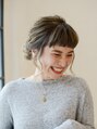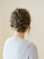 ハチ下耳前の髪だけ少し残し、低めのポニーテール。バランスよく全体に束感を引き出してから、結んだ毛先を三つ編みにして、ぐるっとまとめておだんごに♪サイドの髪の毛を、ねじって巻き付け、表面の束を引き出して完成です♪【EARTH川中島店】