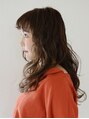 胸下ラインのワンレングスベースに、ボリューミーなウェーブのグランジヘア。内側と外側、それぞれのカールが弾むような「重軽」バランスのフリンジバングもポイントです。短いバングが可愛らしいデザインを個性的に引き立てます。