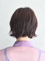 柔らかなカールと、落ち着いたダークブラウンカラーでフェミニンな雰囲気が魅力のボブヘア。毛先を外ハネに、前髪も斜めに軽く巻くことで、軽さが出て爽やかな印象に仕上がります。