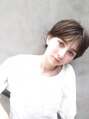 毛先のハネ感とうすい前髪がポイントのショートスタイル。うすい前髪はセンターから横に流れるようにスタイリングして束感をだしてその流れから耳かけスタイルで顔まわりをスッキリ見せます。耳後ろからハネる毛先がより可愛さを引き出します。