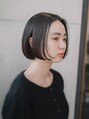 あごラインの切りっぱなしボブ。ラインはパツンとさせ重さと軽さの絶妙な質感を入れた洗練された大人ボブ。乾かしたあとにオイルを全体的に馴染ませたら完了です。
