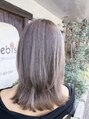 ブリーチをして上から紫とグレーをのせてベージュカラーにしました。カットもレイヤーを入れてくびれるスタイルにしました。