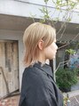 そとハネのウルフレイヤーになってます。アイロンでそとハネの作りやすい肩につく長さでカットしています。トップは手ぐしで簡単に流せるようにしています。カラーですが、今回はしていません。ここまでのハイトーンカラーはお受けしておりません。