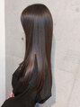 毛先を中心に少しレイヤーを入れておろしていても厚みが出にくいようにしています。ストレートでワンカールでも良いですし、アイロンで巻いても重くなりすぎないのでオススメです!根本のボリュームが出やすくなるように頭皮ケアもしています。