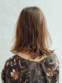 鎖骨下のセミディスタイル。柔らかさと軽さを出すために表面に少しレイヤーを入れています。バングは長めに残してシースルーに作ることで大人っぽさをプラスしています。カラーリングは透明感のあるベージュ系でナチュラルに。