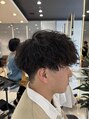 センターパートに波巻きスパイラルパーマ【高座渋谷/大和/湘南台/長後/オージュア/Aujua/縮毛矯正/白髪染め/髪質改善/酸性ストレート/駐車場あり/ショート/ショートカット/メンズカット/メンズパーマ/ヘッドスパ/眉カット/眉毛/藤沢/中央林間/瀬谷/泉区】