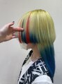 イベントカラー☆推し概念カラー☆抜きっぱなしブロンドにエンドカラーでターコイズブルーを入れて、ポイントエクステでレッドとブラックを入れました!くらげウルフを活かしたデザインカラーです!