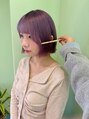ぷつっとボブに色落ちまできれいなラベンダーカラー♪長く楽しめるカラーはお任せください!ボブカットも重さを残しつつ扱いやすいカットを心がけています!