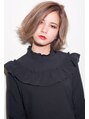 外国人風カラーのミルクティーアッシュに合わせて、モード感のあるロブで大人可愛く。毛先はトレンドの外ハネでヘルシーな雰囲気をプラス。