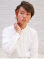 ポイントでカラーを入れたサイドパートスタイル。重めのベースにゆるめのパーマをプラスしました。