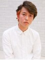 ポイントでカラーを入れたサイドパートスタイル。重めのベースにゆるめのパーマをプラスしました。