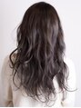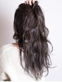 透明感のあるアッシュにパープル×グレーでツヤ感を出しました。室内では黒く見えるほどの暗さですが、ひかりが当たるとパープルに見えるまさに魔法のようなヘアカラーです。