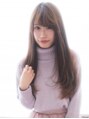 ナチュラルなチョコブラウンカラーにストレートロングワンカールで女性らしい柔らかさを。前髪も無造作ワンカールバンクで目元をくっきりに伸ばしかけの前髪にもオススメなスタイルです。