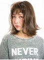 段のない肩に当たる位の重め伸ばしかけワンレンボブ。毛先を1カール巻いて外ハネが可愛い。前髪は眉上のシースルーバング。軽やかで印象的になります。カラーは『ベージュブラウン』上品で艶のあるカラーリングです。セミウェットな質感がい