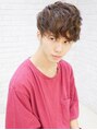 無造作なパーマでグランジ風に。サイドと襟足はツーブロックで刈り上げてスッキリとさせました。重さと軽さのコントラストがカッコイイメンズスタイルです。