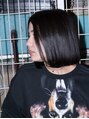 ツヤツヤの黒髪の魅力を最大限に引き立てる、センターパートの大人ボブ。輪郭を包み込む重めスタイルが大人かわいい♪耳かけも◎