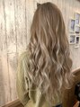 全体ブリーチでかなりハイトーンにして成人式に向けて徐々に白っぽく(^-^)紫シャンプー必須カラーです!