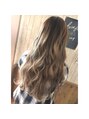 カラーリングで根元のブリーチをしていないプリンの部分を 赤みが出ないように暗めにナチュラルグラデーションに!そしてブリーチをしている部分はミルクティーグレージュで エクステも付けています♪