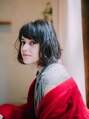 あご下でカットしたワンレンボブ。毛先を中心にふんわりとパーマをかければやわらかな印象に。前髪は流しぎみにすることで可愛すぎず大人な雰囲気にしています。【南草津】