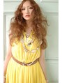 肩下30cmワンレングスベース。すそに動きが出るようにグラデーションカット。前髪は長めでサイドにつなげ束感が出るように。カラーは9トーンのミルキーモカベージュでワンメイク。明るめのベージュを効かせカールの揺らぎと外国人っぽい抜け感のあるヘアを