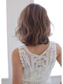 グラデーションボブベースで前髪はリップラインに設定し、スライドカットとレイヤーをオン。カラーは8トーンのスモーキーベージュ。明るめのベージュを効かせカールの揺らぎと外国人っぽい抜け感のあるヘアをアピール。