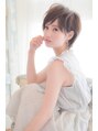 ショートレイヤースタイル。表面にはレイヤーをON、全体に間引きセニングとウィービングカットで柔らかな質感と束感を形成。7トーンのラベンダーベージュ。ツヤ感と透明感を合わせ持つラベンダー系の色味を加えた程よいくすみ感のあるスモーキーカラー!