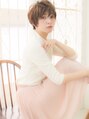 ショートレイヤーベースで前下がりのシャープさに、顔周りトップにレイヤーを入れることで柔らかさをプラスする効果を。つむじからバングにかけてのゆるふわ感とタイトさがハンサム女子によく似合うレディーショートヘア!