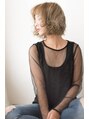 重めのボブに量感調節をして、柔らかい質感にしています。前髪は短めでオシャレに!カラーは16レベルのハイトーンのアッシュグレージュで!