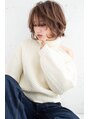 ふんわりしたトップと毛流れが大人可愛いショートボブ。伸ばしかけの長めの前髪も良い雰囲気に。柔らかいアッシュベージュで透明感のあるカラーに、細めのハイライトで立体感をプラス。