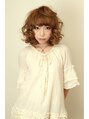 全体的にふわふわのウェーブでガーリーな雰囲気に。外国人の女の子のようなやわらかなフォルム。前髪にもゆるいウェーブでくせ毛風ロンドンガール。
