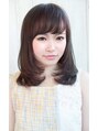 Aライン過ぎない少し顔周りにレイヤーを入れて動きを出したスタイル。下ろし流したバングから顔周りをやわらかくつないで小顔に。