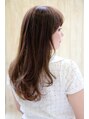 大人ナチュラルな毛先ワンカールスタイル。顔周りのカット次第でどんな方にも似合わせ出来ます。ヘアカラーは爽やかさ+抜け感をイメージしてイノセントアイスブルーで決まり◎