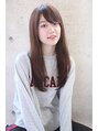 Aラインに少し顔周りにレイヤーを入れたストレートロング。毛先ワンカールで簡単にスタイリングできます。カラーをアディクシーアメジストで重ためなスタイルも軽い印象に。