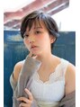 ネイビーアッシュ×ショートヘアで大人のショートスタイルに!カラーはイルミナカラーで、室内では落ち着いたアッシュなヘアカラーに見え、屋外では透明感たっぷりの柔らかいベージュ系に見えます。