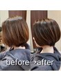スッキリさせた襟足のくびれが可愛いショートボブです!白髪はしっかり染めて、明るいカラーを表面に被せればハイライト風のカラーの出来上がりです!