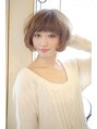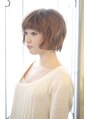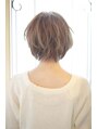 ベースは、やや前下がりのショートボブ!全体に空気感をだすように間引きカットします。パーマは、根元からふんわりワンカールでるようにかけます。カラーは、上品なライムグレージュです。