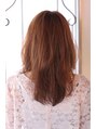 全体にローレイヤーを入れ前髪は重めバング、巻いて目ぎりぎりになるようにカットします。毛先に1,5回転パーマを平巻きに巻きます。カラーは、上品なベージュカラーをいれます。