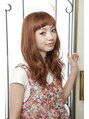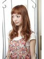 おしゃれなラフウェーブのカジュアルガーリースタイルです。前髪は短めの厚めバング、中間~毛先にゆるふわパーマをかけカラーはベージュカラー