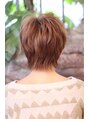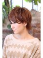 ベースは前下がりのマッシュショート。前髪は長めでシャープな切り口でカットします。トップにレイヤーを入れ無造作な動きを出します。全体にモイストパーマをかけ動きをつけます。カラーリングはノーブルカラーにし、ローライトを散りばめます。